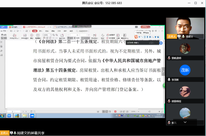 2020年4月14日14:30时,周建文律师通过网络直播方式宣讲当前疫情下“不可抗力”、“情势变更”和“公平原则”在租赁关系中的准确适用。旨在引导租赁双方了解法律规则,避免纷争,构建和谐的租赁关系。